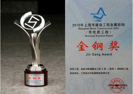 我公司承建的上海趙家溝航道整治工程(船閘)鋼結構工程榮獲上海市優(yōu)質工程金鋼獎